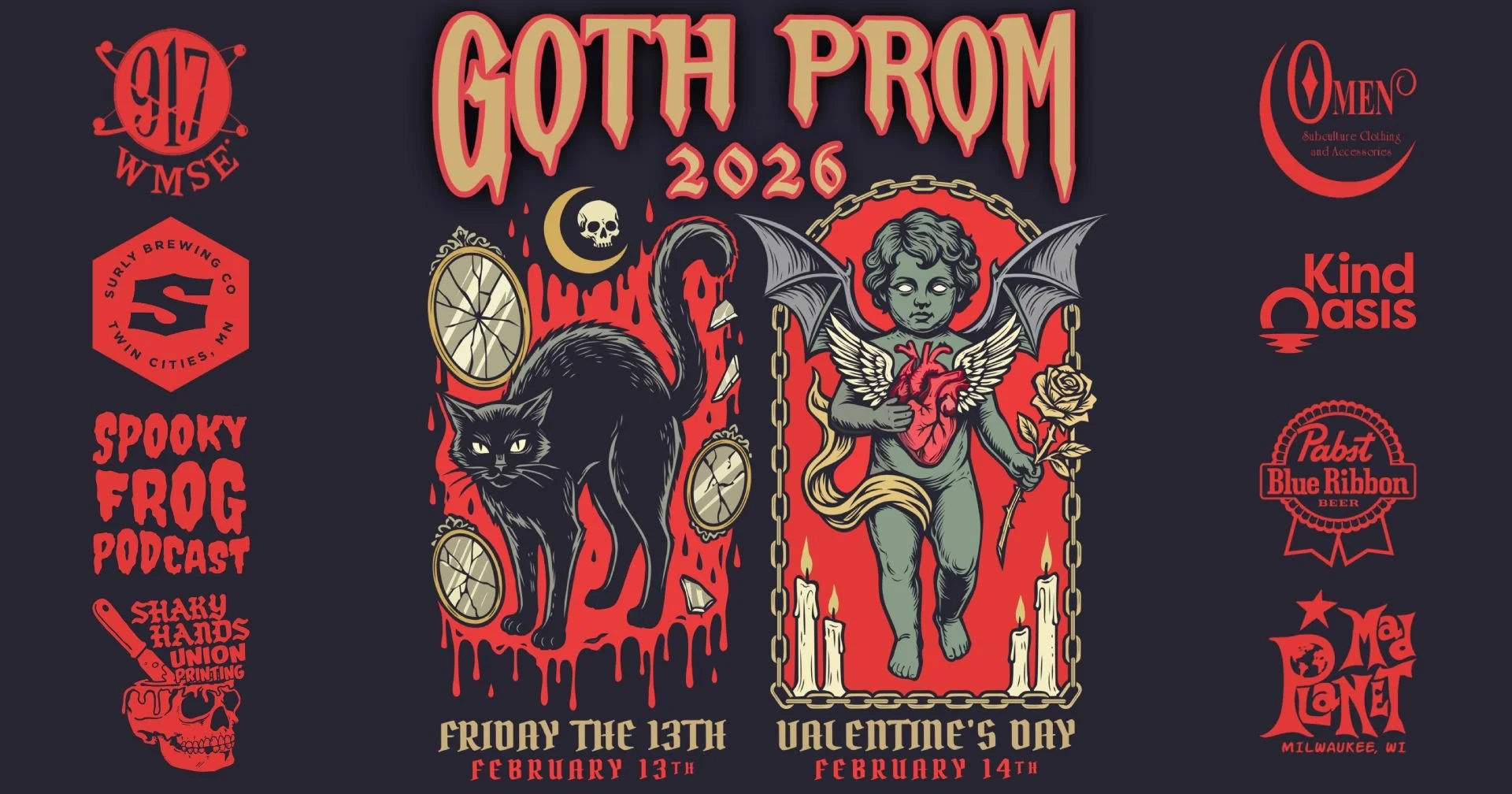 Friday Feb 13th & Saturday the 14th!! Two Enchanting Nights Of Darkness For GOTH PROM 2026 at MAD PLANET!